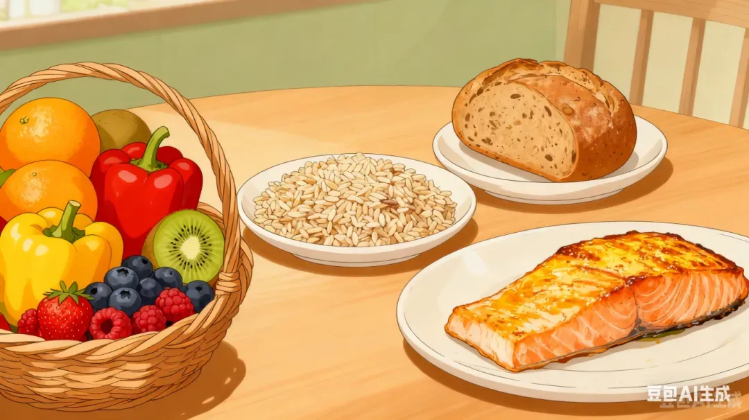 选择全谷物替代精制谷物,如燕麦、糙米、全麦面包等。其膳食纤维有助于降低胆固醇吸收,改善代谢健康,降低血液黏稠度。